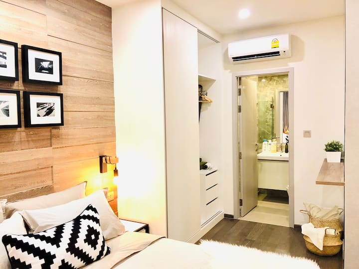 Модерен 1BR в сърцето на BKK, частен асансьор, 5 минути BTS