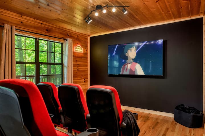 🎥 Самостоятелен киносалон, маса за 🎱 билярд, 🧸 детски игри, 💦 закрит басейн с подгряване, 🔥 хидромасажна вана под звездите, скара 🍔 Blackstone. Намира се в затворен курорт, 🐾 подходящ за домашни любимци, и на минути от атракциите на Pigeon Forge – идеално за семейства и групи!