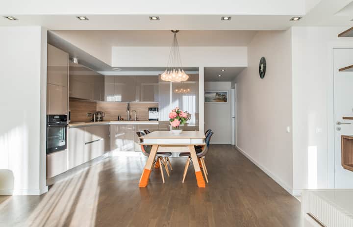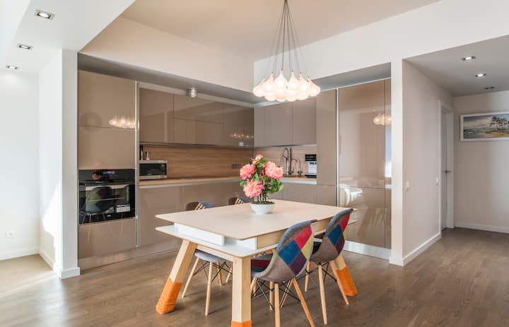 Луксозен апартамент в дизайнерска сграда близо до море/парк