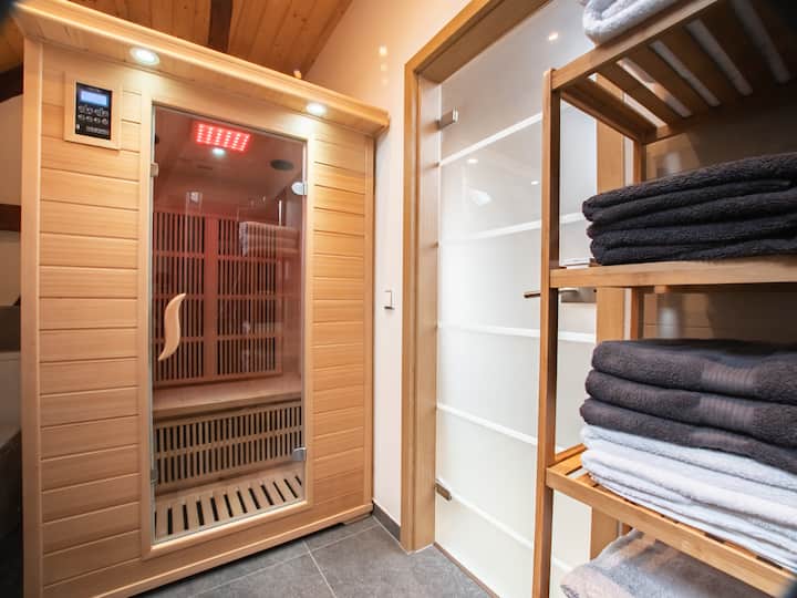 Отпуснете се с удобствата външен душ, сауна и хидромасажна вана Jaccuzi.