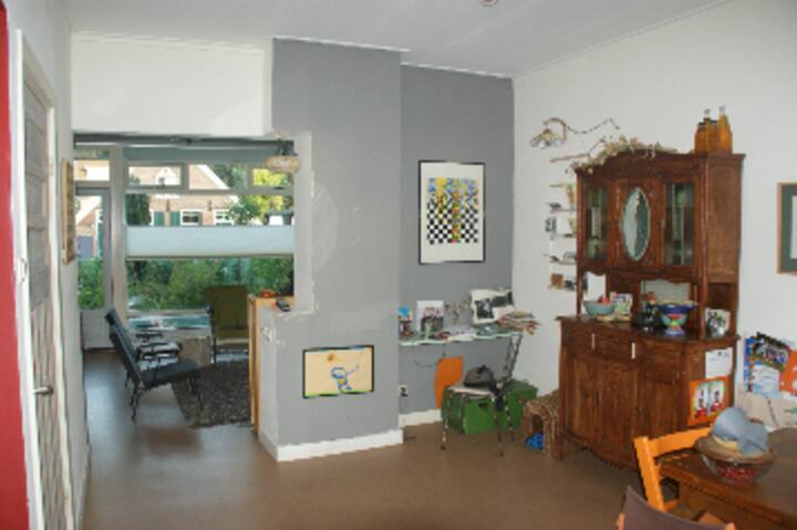 Живея със съпруга си и двамата ни сина (в началното училище) в Реден. Аз съм журналист със склонност към градинарството. Градината ни е рай в процес на създаване. Когато самите ние сме на почивка, с удоволствие предоставяме на разположение къщата, градината и велосипедния паркинг. Намираме се в подножието на Посбанк, едно от най-красивите места в Нидерландия, на река Ейссел (велосипеден ферибот), с езеро за отдих и открит плувен басейн. Къщата ни е уютна, но не прекалено чиста. Спалнята на родителите е в мазето, момчетата спят горе.