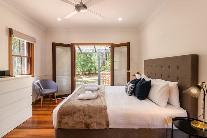 Добре дошли в Bay and Bush - спокойно място за отдих, предлагащо 8 уникални ваканционни къщи и палатки за сафари, сгушени в 27 акра девствени австралийски храсти. Разположен само на минути от Хъскисон и на два часа от Сидни или Канбера, нашият имот ви поставя в сърцето на залива Джървис, заобиколен от зашеметяващи национални паркове, тюркоазени води и девствени бели пясъчни плажове като Хаймс Бийч. Всеки престой съчетава модерни удобства с красотата на природата, предлагайки пешеходни пътеки, изобилие от диви животни и магически изживявания за наблюдение на звездите.
