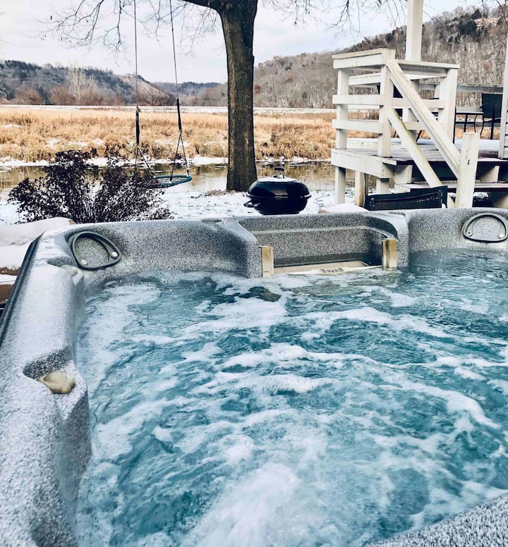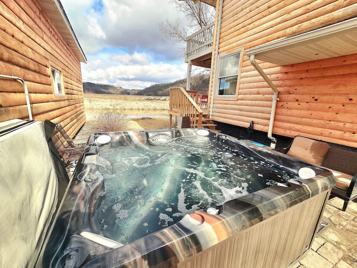 Хижа край бавно течаща река с външна хидромасажна вана, 12 спални места