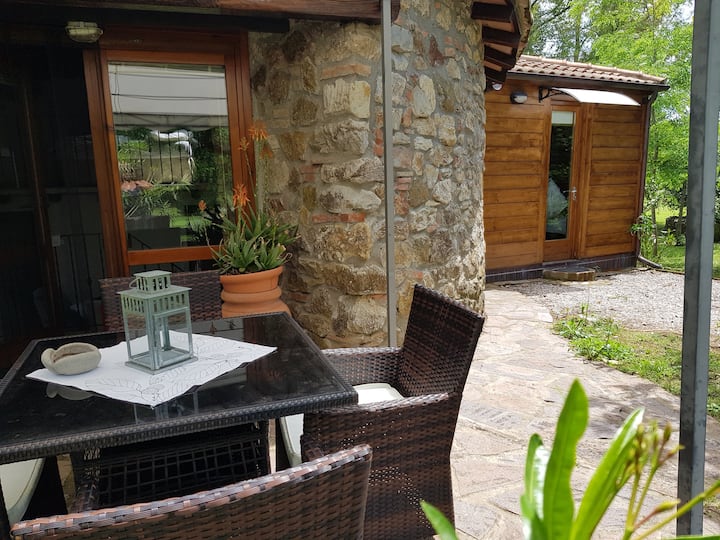 Тази малка, антична кръгла къща е самостоятелна с разстоянието до основната къща, заобиколена от около 1000 квадратни метра градина със сенчести дървета и следователно е идеално място за отдих за 2 - 4 души, които търсят спокойствие, релаксация + специална атмосфера.