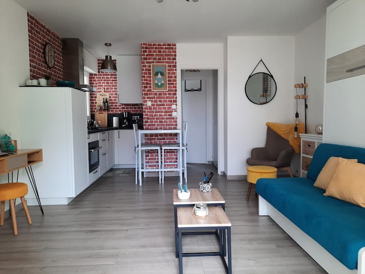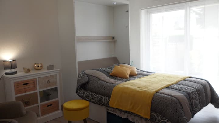 Живеем в провинцията на час от Карнак заради работата си, но обичаме бретонското крайбрежие (разходки, колоездене, ...), всъщност има твърде много възможности; затова сме подготвили нашето уютно малко гнездо (надяваме се, че ще бъде и по ваш вкус), за да се презаредим възможно най-много. Имаме две деца (30 и 26), обичаме да пътуваме и да се срещаме с нови хора.