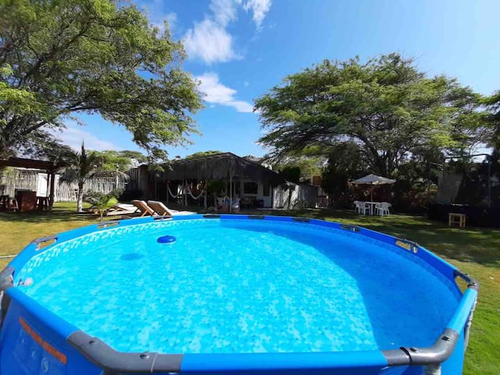 Той е 100% оборудван, с мобилен Wi - Fi, смарт телевизор с Directv, грил от неръждаема стомана, голяма градина с ПВЦ басейн, голяма тераса в основната къща с градини и директен достъп до морето и плажа с красиви залези, много познат, в супер безопасна и тиха зона. Без градски шум и тълпи. Ще дишате спокойствие. Той е идеален за разходки, джогинг, плуване, йога и спортове на открито. С топла морска вода през цялата година и разнообразие от естествен живот в околната среда, което ще ви плени. Свържете се отново със себе си в Casa BONNE.VICHAYITO.