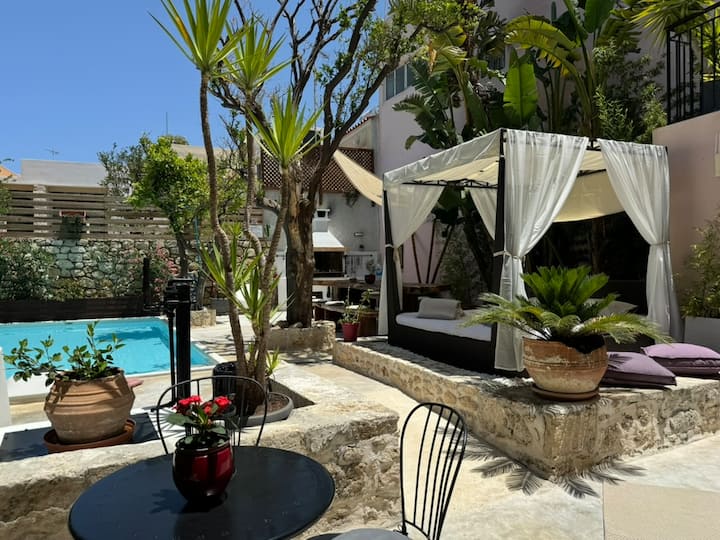 * Скритото бижу на Крит: Имението е единствената частна историческа вила в стария град, която осигурява двойния лукс на просторен басейн и обширна градина, което я прави наистина уникално и рядко съкровище.