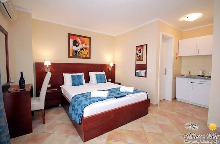 Стая с голям балкон и директен изглед към морето