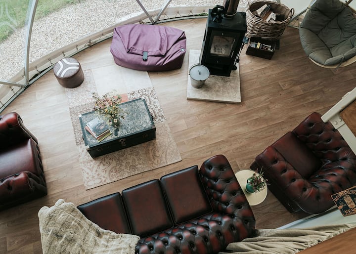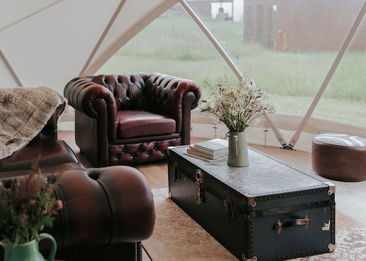 Всеки от куполите ни има добре обзаведена зона за отдих с кожени дивани от честърфийлд, уютни фотьойли и горелки. Банята е самостоятелна и разполага с голям душ, мивка и промивна тоалетна.