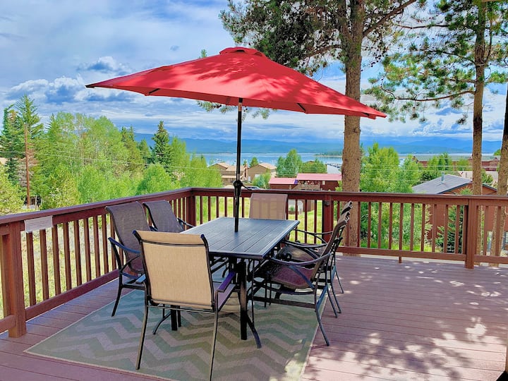 Планинският живот се среща с луксозен, уютен комфорт в Лейквю Хейвън - скандинавско модерно място за отдих с изглед към езерото Гранби в Колорадо, с прекрасни гледки към езерото и планинските върхове от голямата палуба.