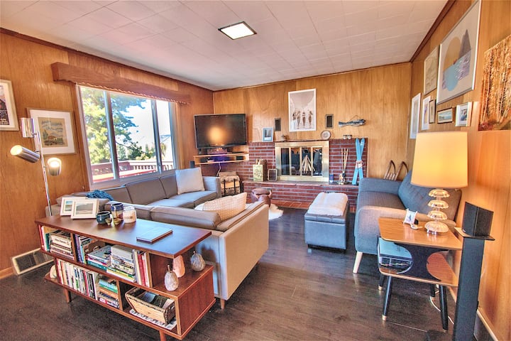 * В Голямата стая ще намерите привлекателна всекидневна и трапезария, която представлява комбинация от модерни и скандинавски модерни мебели от средата на века, ръчно подбрани дизайнерски елементи и изкуство, камина на дърва с осигурено дърво, много уютни одеяла, Wi - Fi, телевизор с висока разделителна способност, модерен грамофон с ретро плочи, което ви позволява да имате аналогово изживяване от 60 - те години чрез модерна развлекателна система и голяма колекция от DVD дискове. Лесно пускане на собствените ви приложения за стрийминг чрез нашата система Roku. (Нямаме кабелна телевизия.)