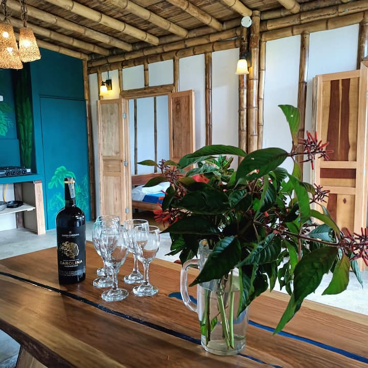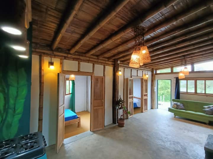 Красива частна бамбукова хижа в ранчо за коне