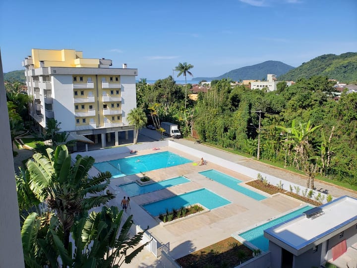 Красив апартамент в Убатуба на 4 минути от плажа. Супер уютно с 2 спални с 1 апартамент, 1 социална баня, всекидневна, напълно оборудвана кухня, зона за обслужване, балкон с барбекю.