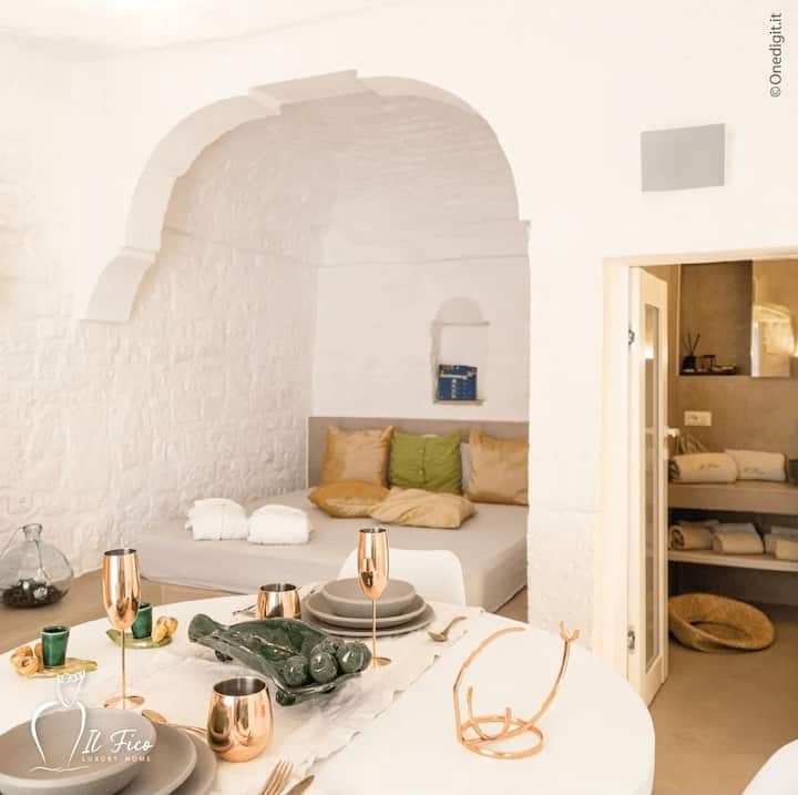 Fico Luxury Home Ostuni е изживяване на цветове, аромати, чар и красота на типичната каменна къща, напълно реновирана, като същевременно запазва местната традиция. Можете да се насладите във ваната в стаята на великолепната гледка от красивата Вале д'Итрия или да вечеряте или да опитате аперитив на терасата с изглед към морето, оборудван със солариум, обогатен с типични растения от средиземноморския скраб... всичко това на магическо и очарователно място