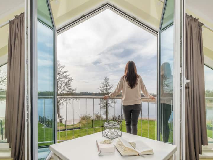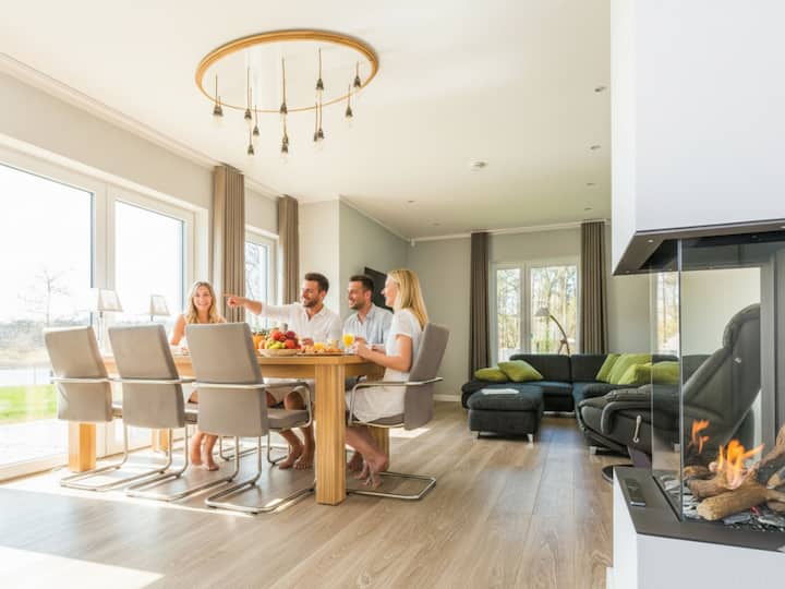 Луксозен дом край езеро със сауна, камина и лодка - 130m²