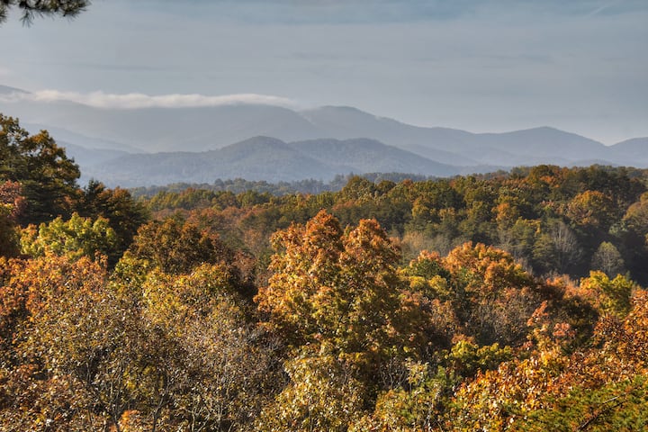 Изглед към Апалачите - луксозна дървена колиба с хидромасажна вана и изглед към планината