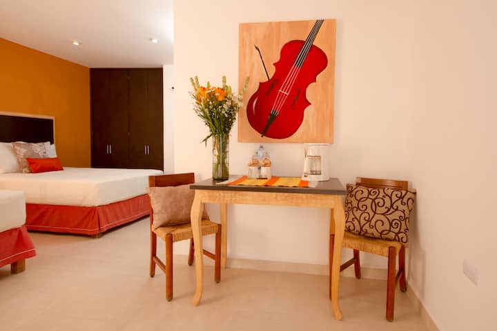 Семейство, родено в Сан Мигел де Аленде, Хорхе (Абогадо), Сандра (бизнес администратор), експерти в нашата дестинация Сан Мигел, ние лично посещаваме нашите гости; разбира се, друго ниво на внимание, със сертификати за предоставяне на услуги, обичаме да четем, изкуство, изложби, галерии и фотография.