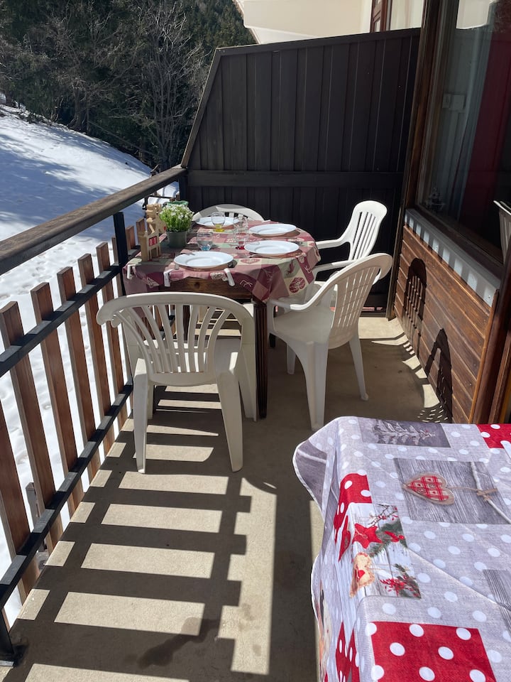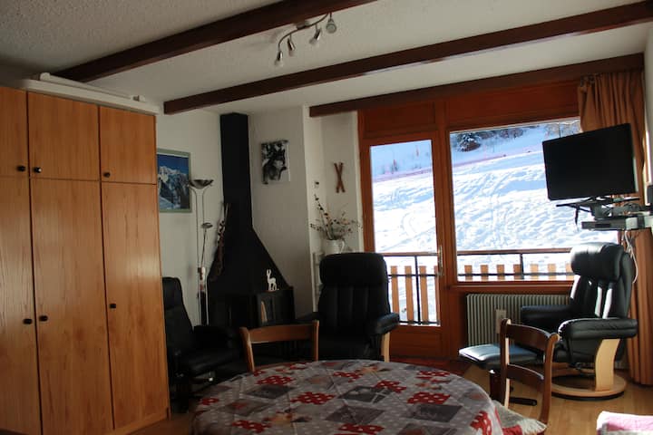 Голямо студио за 4 човека с балкон с изглед към пистите