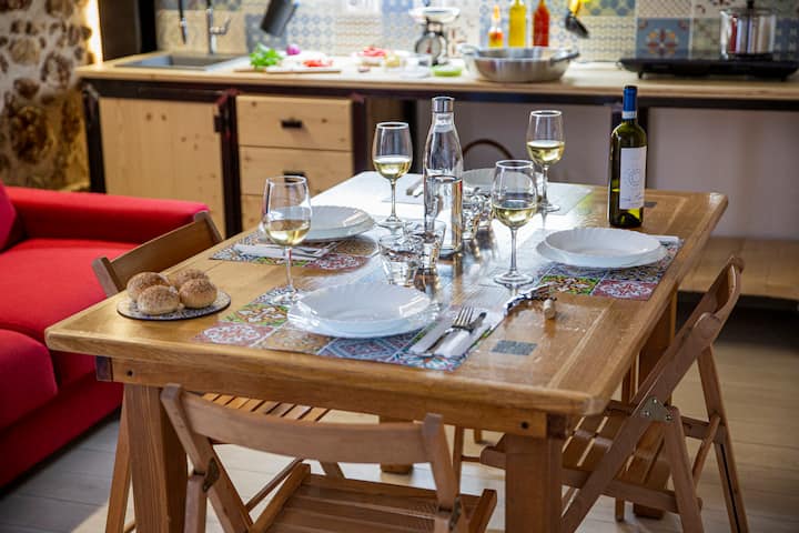 Супер удобен и просторен апартамент на приземния етаж на един хвърлей от историческия център и пристанището, състоящ се от напълно оборудвана кухня с телевизор и диван, обзаведен, спалня с двойно легло и единично легло, анти - баня и баня с душ.