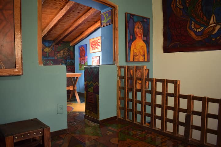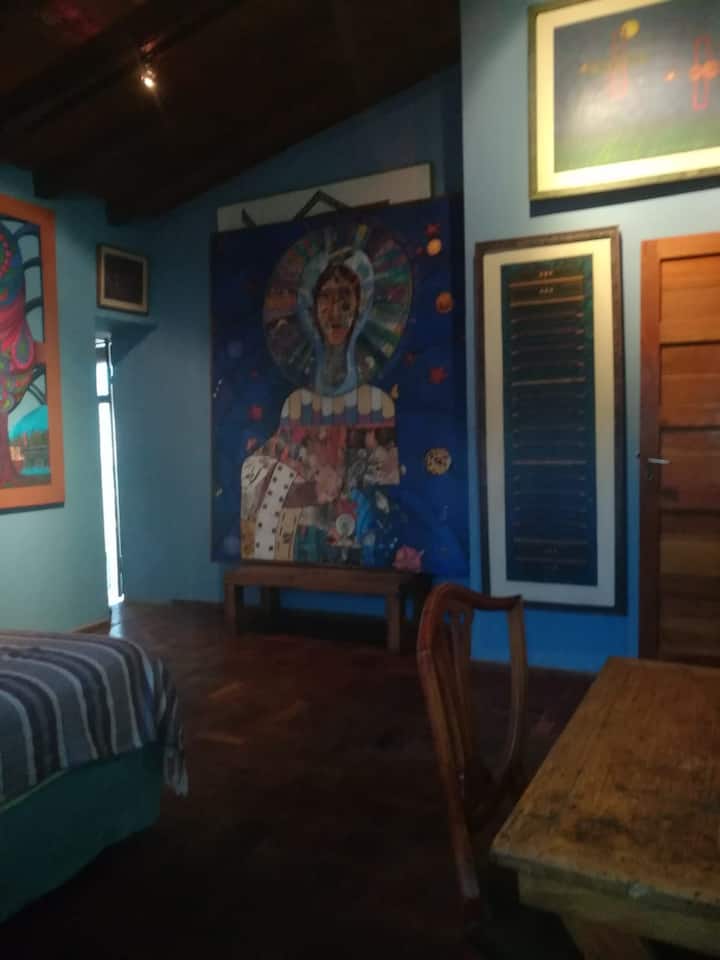 Аз съм Омара Серу, художник на Мендоса. Живея в красива стара къща, на три пресечки от автогарата, където съм домакин на творбите си, тези на децата ми и много художници от световна класа. Тук правим художествени изложби, музика и поетични рецитали. Той е обявен за културен и туристически интерес от провинция Мендоса. В лицето ми, Омара Серу, можете да видите някои от творбите ми. Youtube: Casa Serú. В момента реших да наема стаи, които вече не използвам за Airbnb. Къщата работи като хостел, а гостите имат собствена добре оборудвана кухня, баня, всекидневна - трапезария, т.е. собствено помещение. Разполага и с музикална стая и наскоро настроено пиано. Обикновено има концерти през почивните дни, а гостите имат безплатен достъп. Мястото ми ще ви хареса.