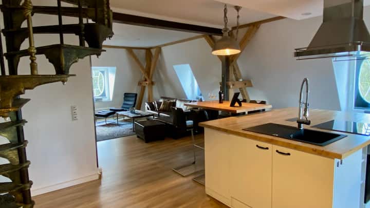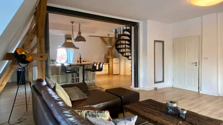 Мезонетна квартира с винтови стълби на тавана