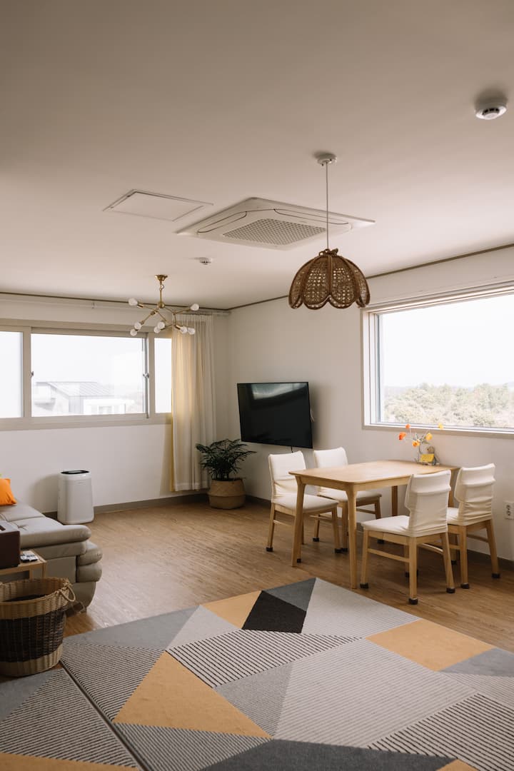 - Подходящи за семейства ваканционни жилища под наем в района на Чеджу