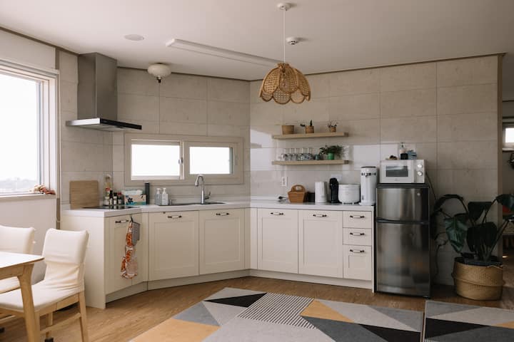 - Подходящи за семейства ваканционни жилища под наем в района на Чеджу-до