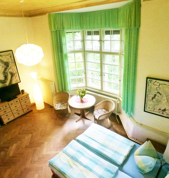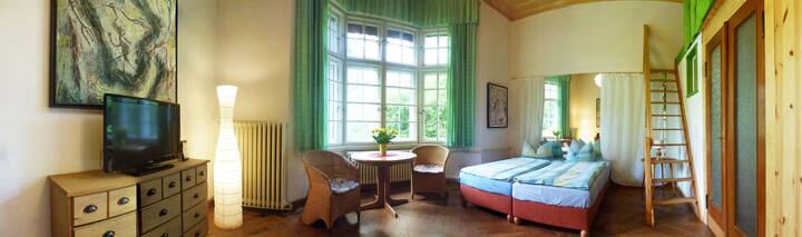 Казвам се Волфрам Один и живея с очарователната си съпруга Керстин Ерлих и три любящи прегръдки: Куно, Алвин и Лобос във Вила Хуфеланд. Вилата се намира в романтично дива градина с по - голямо езеро. Във вилата има живопис и весел дизайн, на който да се възхищавате. Жена ми е учител по йога, терапевт по танци и актриса. Кой иска, може да поиска повече информация за това. Говори се немски, английски, руски и езикът на нашите животни.