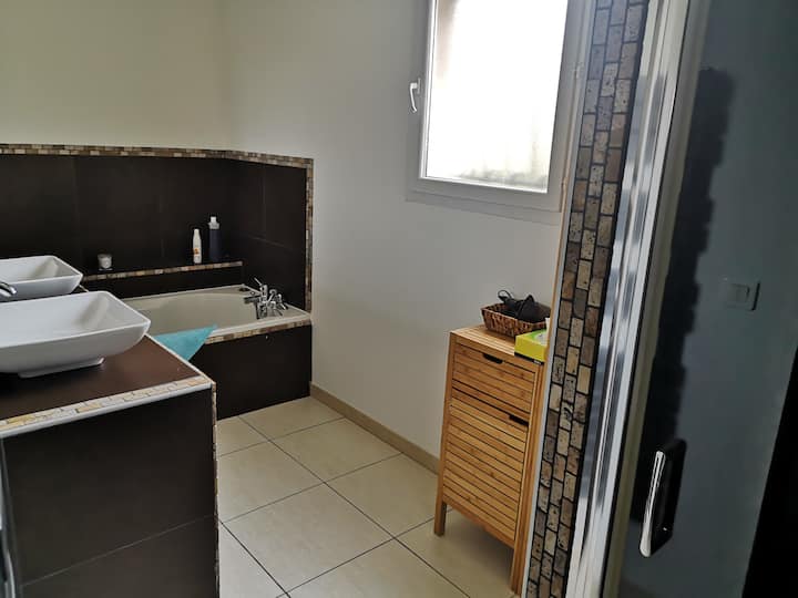 Ползвате отделна стая в дом, както и достъп до общи помещения.
