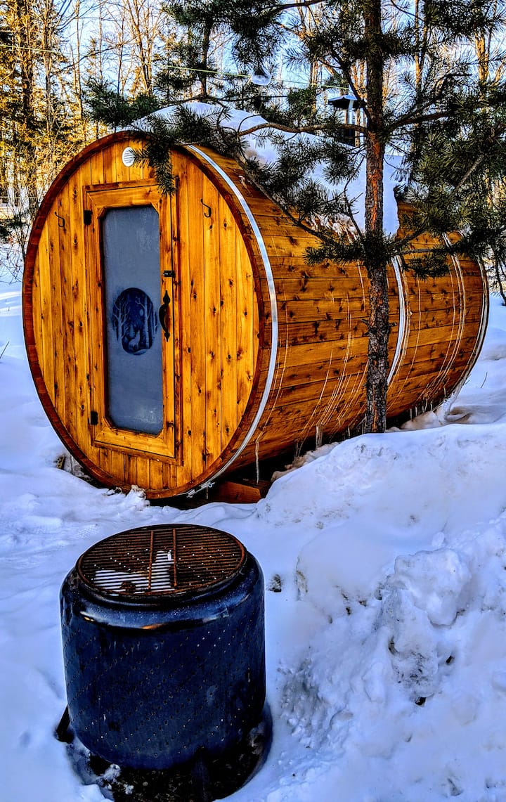 След цял ден край езерото се отпуснете в самостоятелната си хидромасажна вана или влезте в сауната на открито, заобиколена от дървета. Вечер запалете огън, споделете истории под звездите и се насладете на свежия планински въздух. Просто се свържете с нас и попитайте за нашите услуги и цени за дърва за огрев. Ще се радваме да ви помогнем с доставката на дърва за огрев. Разбира се, вие сте повече от добре дошли да донесете своя собствена.