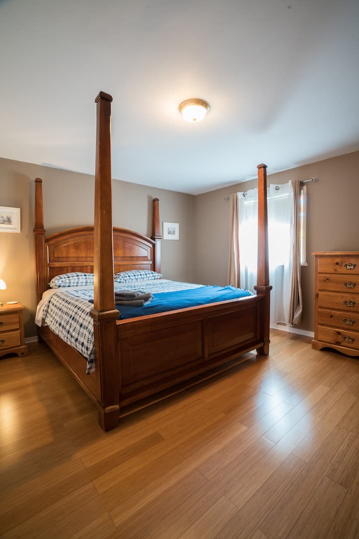 Истинско убежище край водата, сгушено в красотата на Сините морета, Квебек. Тази хижа с 5 спални и 3 бани съчетава рустик чар с модерен лукс, за да предложи най-доброто изживяване в хижа – идеално за семейства, групи или всеки, който жадува за спокойна почивка сред природата.
