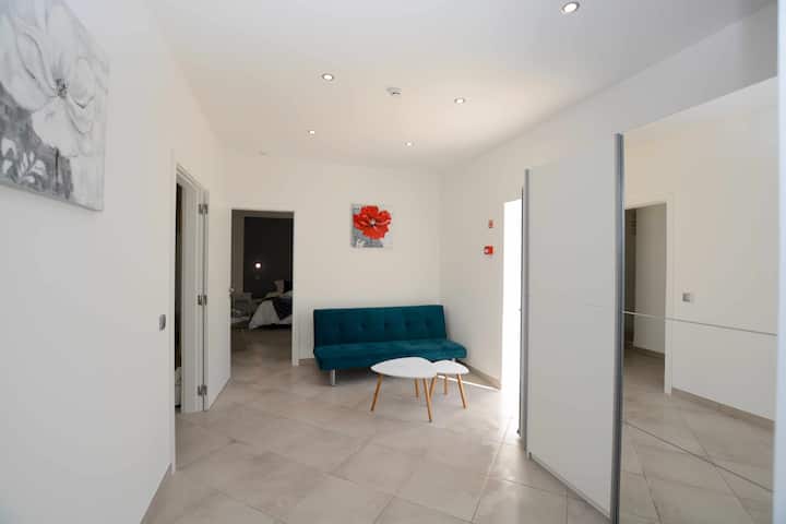 Просторна стая с кът за сядане, където има разтегателен диван, възможност за 4 гости, идеална за семейства. Самостоятелна баня с хидромасажен душ, сешоар, смарт телевизор, климатик, хладилник, сейф. Външно пространство с отопляем басейн със солена вода, сауна, 2 джакузита с хромотерапия и фитнес зала. Безплатен високоскоростен WI - FI