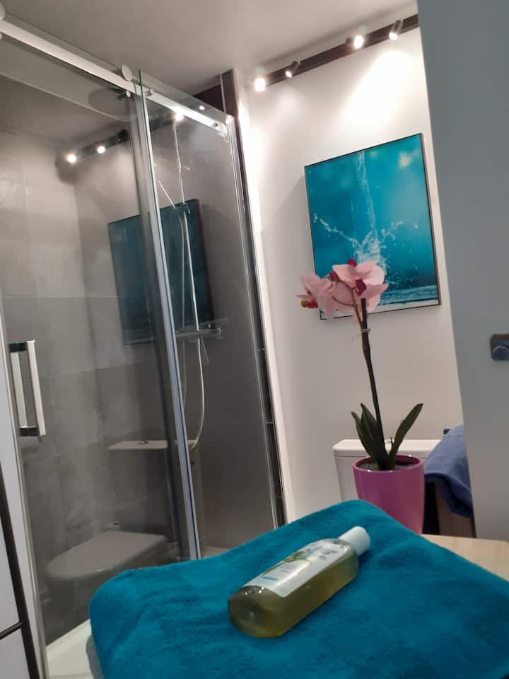 Родом от Нормандия, се наслаждавах на този район, където живея повече от 30 години. Исках да предложа на домакините уютно място на привилегировано място, готово е с това студио, където се надявам да се чувствате като у дома си