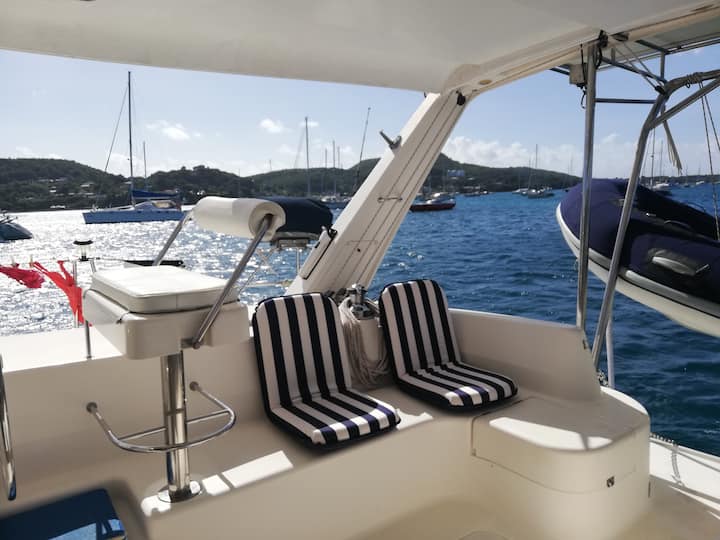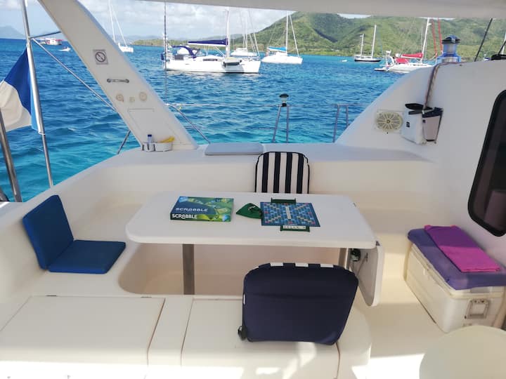 Удобен катамаран на котва в Сент Ан