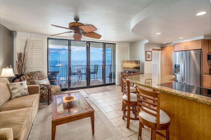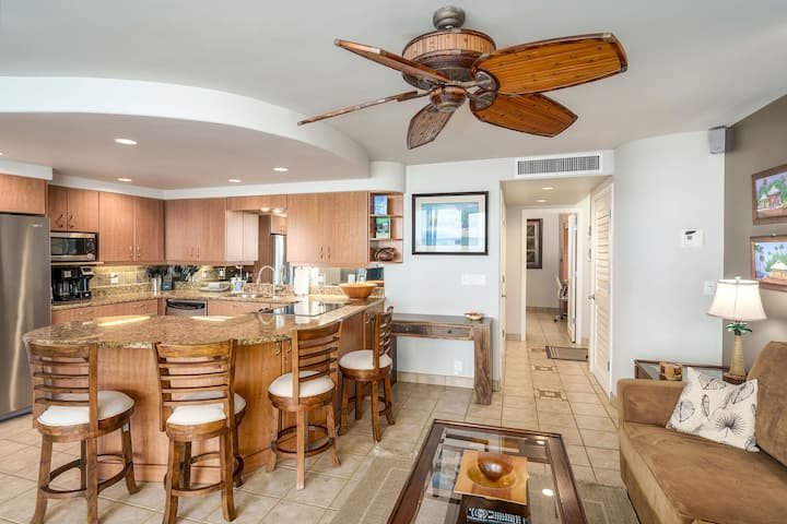 Насладете се на несравнима гледка към океана от този апартамент на последния етаж - Kihei Beach Condominium 606. Красиво реконструиран, на брега на морето, с изглед към най-дългия златист пясъчен плаж на Мауи. Започнете и завършете всеки ден на Мауи с панорамни гледки, които се простират в Тихия океан далеч отвъд видимите външни острови, наблюдавайте как китовете скачат от океана през сезона и се насладете на напълно потопено океанско изживяване за двама по време на престоя си в Мауи.