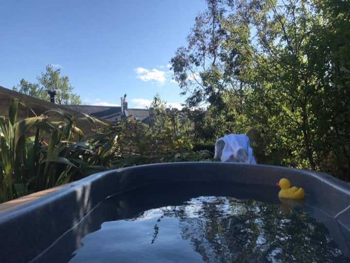 Звездно небе, спокойна хидромасажна вана на дърва