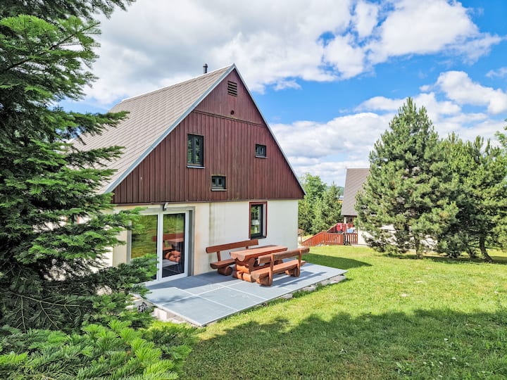 Čistá v Krkonoších 2 km from Černý Důl: Подходящо за деца, красиво, удобно ваканционно селище „Holiday Hill 65 “, на 500 м надморска височина, заобиколено от дървета и ливади. 43 къщи в курорта. В покрайнините, в уединена, тиха, слънчева позиция, на 1,5 км от езерото, на 3 км от ски зоната, в провинцията. За общо ползване: имот 6 ha, поляна, басейн с подгряване (9 x 4 m, дълбочина 120 cm, сезонна наличност: 15 май. - 30 септември работно време на басейна: 09:00-20:00). Душ/тоалетна в зоната на басейна, тенис на маса, детска площадка (люлка, пясъчник). В комплекса: рецепция, централна отоплителна система. Паркинг (за 2 коли) в къщата. Магазин 2,5 км, хранителен магазин 2,5 км, супермаркет 7,5 км, ресторант 1,6 км, градина на кръчма 400 м, автобусна спирка „Černý Důl, Čistá-pošta“ 400 м, тревен плаж 1,5 км (малък), закрит плувен басейн 19 км. Голф игрище (18 дупки) 14 км, тенис 2,5 км, спортен център 2,5 км, пешеходни пътеки от къщата 100 м, велоалея, ски лифт 3 км, седалков лифт 3 км, писти 3 км, ски училище 3 км, детско ски училище 3 км, бягане с шейна 7 км, ски писта 100 м. Близки забележителности: Janské Lázně Spa 9 км, Vrchlabí 10 км, Aquapark Trutnov 25 км, Zoo Safari Dvůr Králové 29 км, Bozkovské jeskyně 37 км, Adrššské skály 44 км. До добре известни ски райони може лесно да се стигне: Černý Důl 3 км, Herlíkovice 15 км, Pec pod Sněžkou 22 км. До добре познатите езера се стига лесно: Чиста 1,5 км, Върчлаби 9 км. Пешеходни пътеки: Sněžka 25 км.