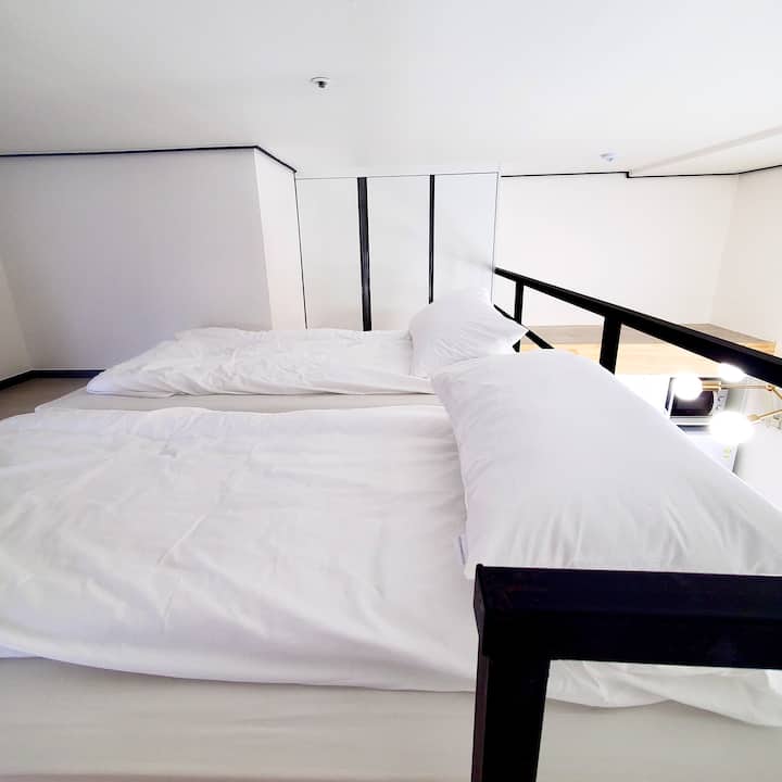 10 секунди пеша от гара Ису/мезонет тип студио/пълен набор от удобства/2 единични легла/диван маса