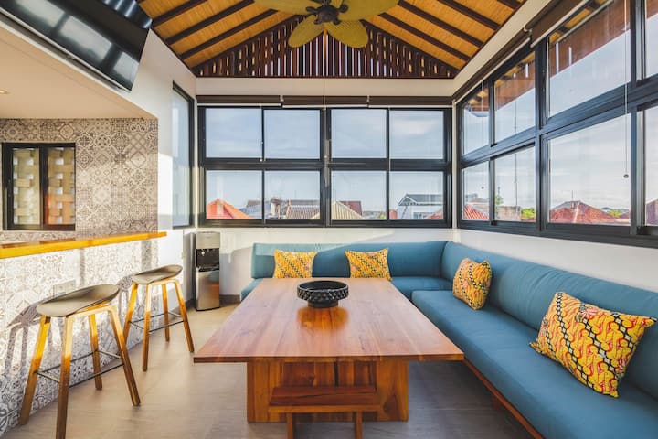 Или решавате да се насладите на плуване с изглед към оризовите полета на Бали, да се отпуснете на мързеливите ни столове, четейки книга, или да гледате някои спортни събития на масивния плосък екран, докато отпивате ледена студена бира – третият етаж е там, за да сбъдне желанието ви.
