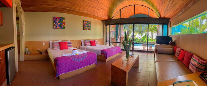 Намираме се по протежение на красивия плаж Esterillos Este в централния тихоокеански регион на Коста Рика, нашият 4 - звезден международен хотел е последното крайбрежно бягство. Слънчевият плаж, блестящите океански вълни и скалистите зелени скали създават впечатляващ пейзаж срещу уникалните пастелни вили на Алма дел Пасифико. Очарователните пътеки водят през цветни декоративни, билки и овощни градини до бунгалото им в оазиса. А невероятната дива природа носи природни чудеса на Коста Рика точно на прага ѝ.