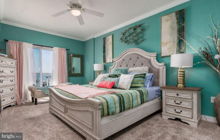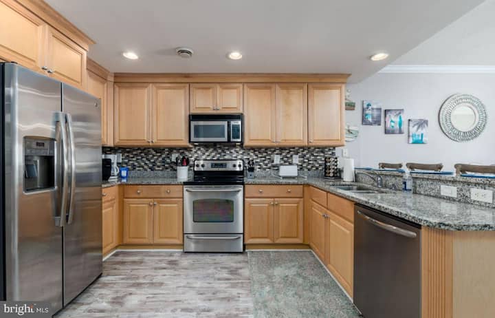 Красиво обзаведен луксозен апартамент с 2 спални и 2 бани и половина с разкошна ИЗГЛЕДКА КЪМ ОКЕАНА И ЗАЛИВА на престижно място в центъра на града, близо до 21-ва улица в сърцето на Оушън Сити!!