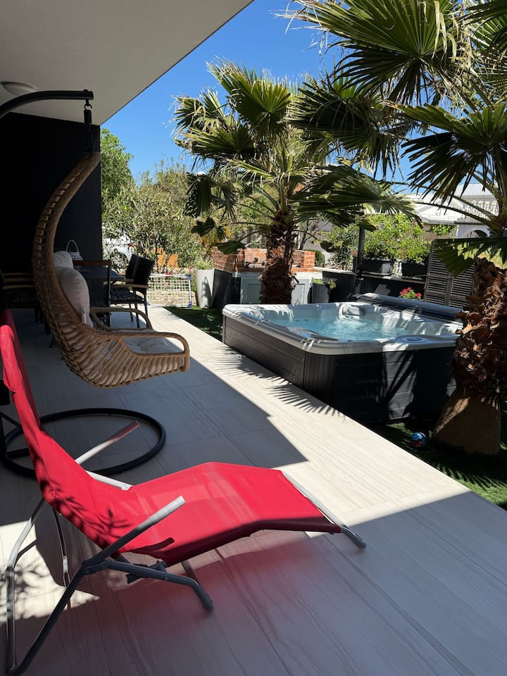 Отпуснете се с удобствата външен душ и хидромасажна вана Jaccuzi.