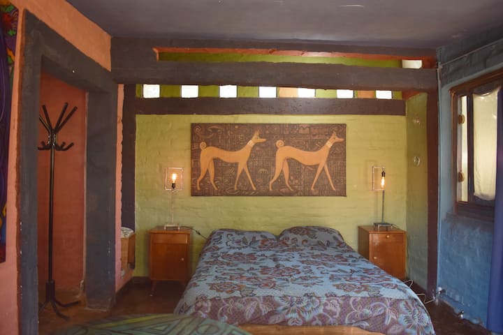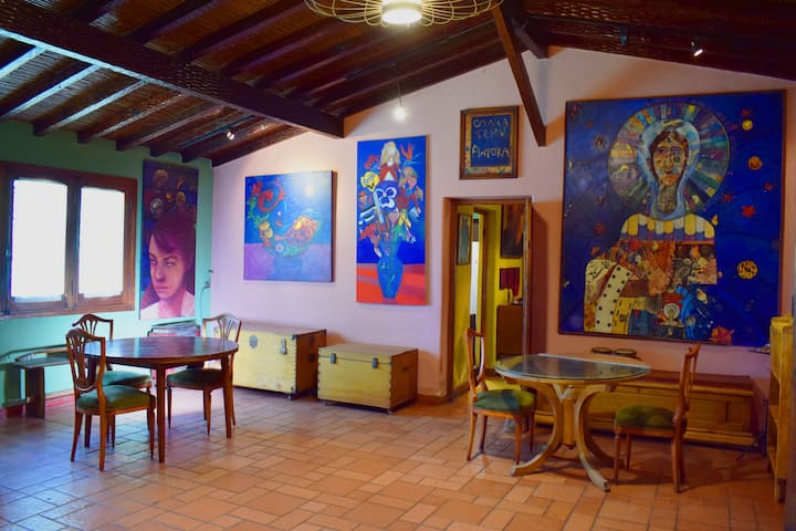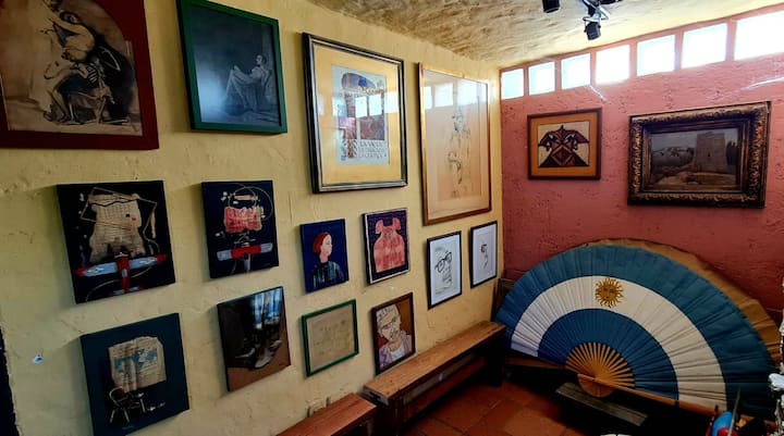 Аз съм Омара Серу, художник на Мендоса. Живея в красива стара къща, на три пресечки от автогарата, където съм домакин на творбите си, тези на децата ми и много художници от световна класа. Тук правим художествени изложби, музика и поетични рецитали. Той е обявен за културен и туристически интерес от провинция Мендоса. В лицето ми, Омара Серу, можете да видите някои от творбите ми. Youtube: Casa Serú. В момента реших да наема стаи, които вече не използвам за Airbnb. Къщата работи като хостел, а гостите имат собствена добре оборудвана кухня, баня, всекидневна - трапезария, т.е. собствено помещение. Разполага и с музикална стая и наскоро настроено пиано. Обикновено има концерти през почивните дни, а гостите имат безплатен достъп. Мястото ми ще ви хареса.