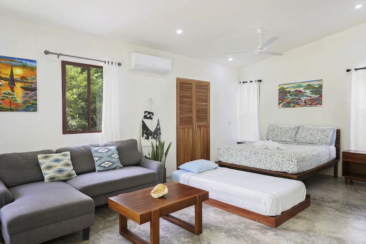 Zen Casita Studio е закътано само на кратка разходка до Beach Club и сърф почивката в Плая Колорадо в развитието на Hacienda Iguana! Това просторно, самостоятелно студио е идеалното място за един пътник или двойка. Има и легло на колелца, в което може да се настани трети човек. Чудесно за семейство от 3 души!