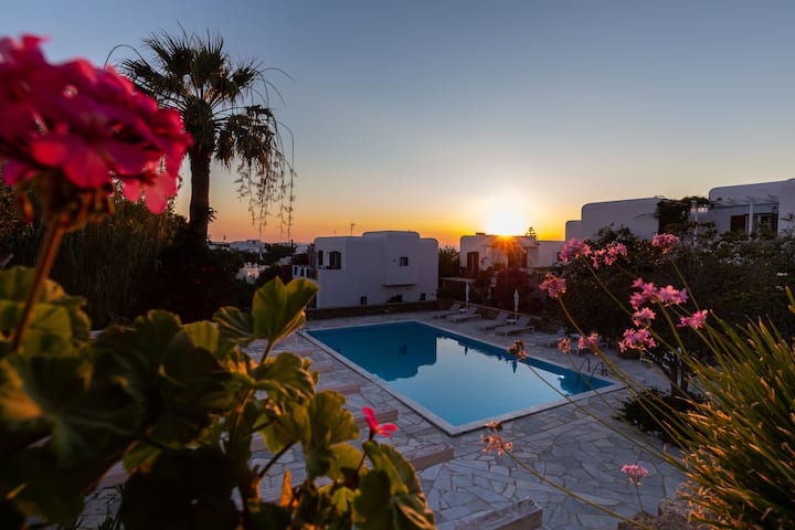 Град Калисти Миконос (Хора) с изглед към басейна.