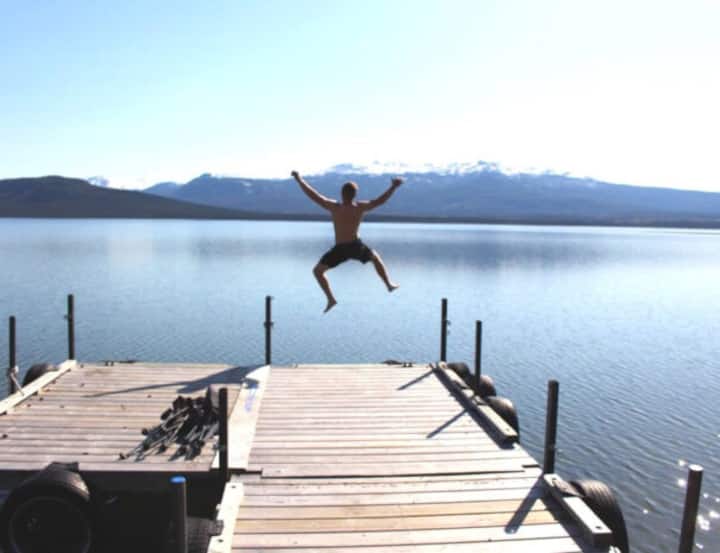 Този дом е точно на Little Atlin Lake.