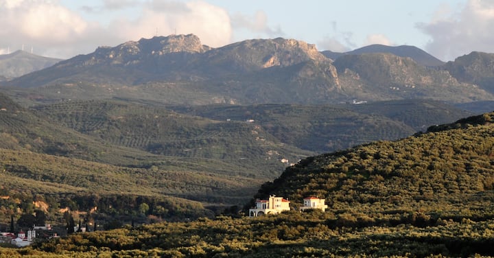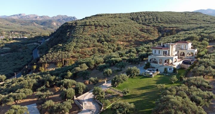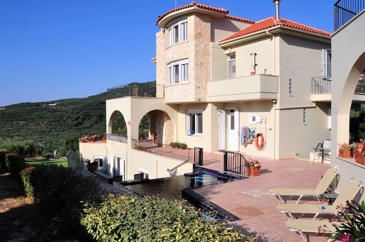 Основната къща на вила Koukouvayia обикновено е с 5 спални и може удобно да побере семейство от 8 души, когато споделят стаи. Разположена на тих селски път, заобиколен от маслини; отдалечена от туристическия шум, но на 5 минути от впечатляващи местни плажове, таверни и град Кисамос; само на 25 минути от историческия Ксаниа и на 45 минути от въздушния транспорт, основната къща предлага рядка комбинация от пространство, уединение, лукс и удобство и лесно се свързва с други обяви на вила Кукувайя за по-големи групи.