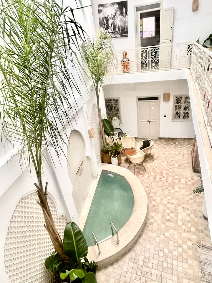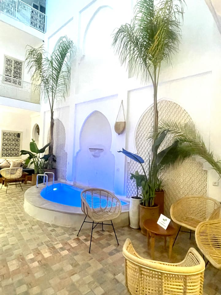Добре дошли в уютното ви убежище в сърцето на Маракеш! Тази очарователна единична стая се отличава с традиционен марокански дизайн, мека естествена светлина, собствена баня и цветни акценти, които правят всеки престой специален. Идеално за самостоятелно пътуващи, търсещи спокойствие, комфорт и автентичен чар само на няколко крачки от Джамаа Ел Фна.