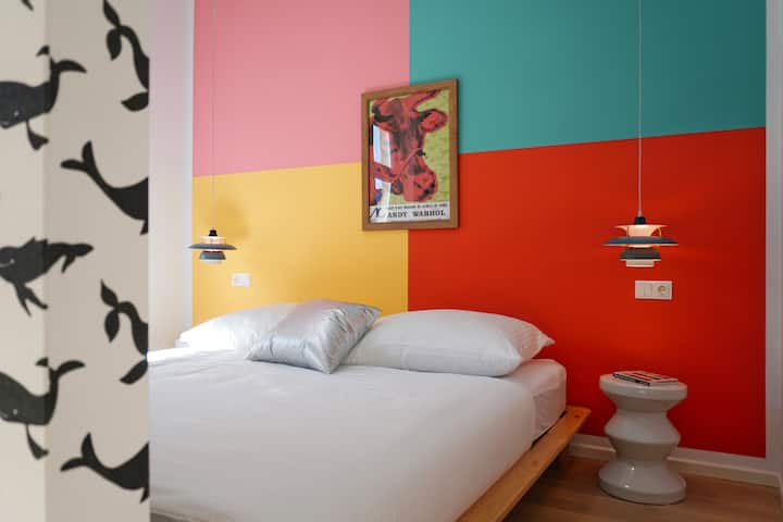 Прекарайте време в този скрит скъпоценен камък, сгушен в зеления 17 - ти район на Виена. Светло, оживено и вдъхновено от невероятните произведения на изкуството на Анди Уорхол, това великолепно студио е убежище от градския живот. Насладете се на минималистичното жилищно пространство с работно пространство, напълно оборудвана кухня и луксозно двойно легло, само на минути от центъра на града.
