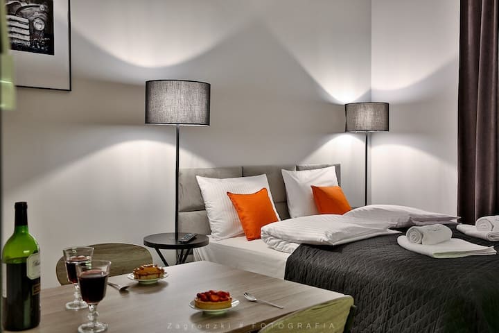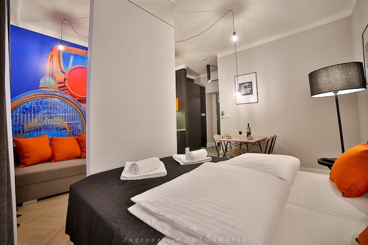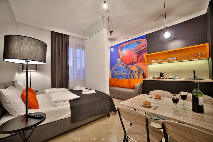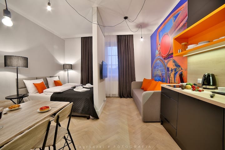 Добре дошли в нашия Airbnb! Този красив апартамент, разположен в сърцето на Краков, ще ви осигури лесен достъп до най - големите туристически атракции на Краков, страхотни ресторанти, пълни хранителни стоки и търговски обекти, както и обществен транспорт! Искаме да се отпуснете тук и се надяваме, че благодарение на избора да отседнете тук, спомените ви за престоя ви в Краков ще бъдат още по - красиви.